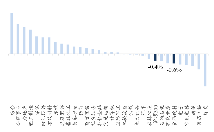 图表1:食品饮料板块涨幅为0.6%,排名第26